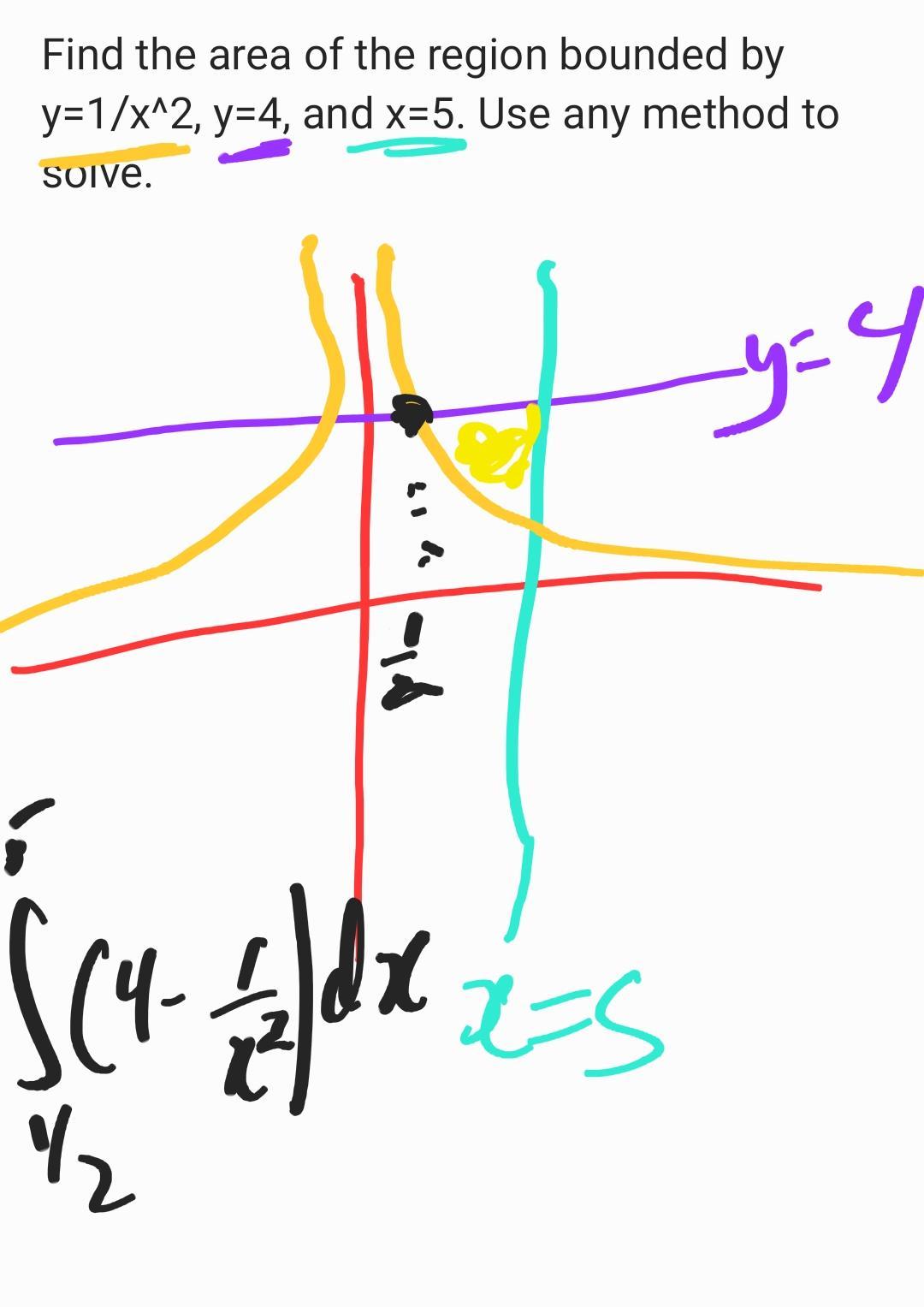 I had to find lower limit for x by finding when 1/x^2=4