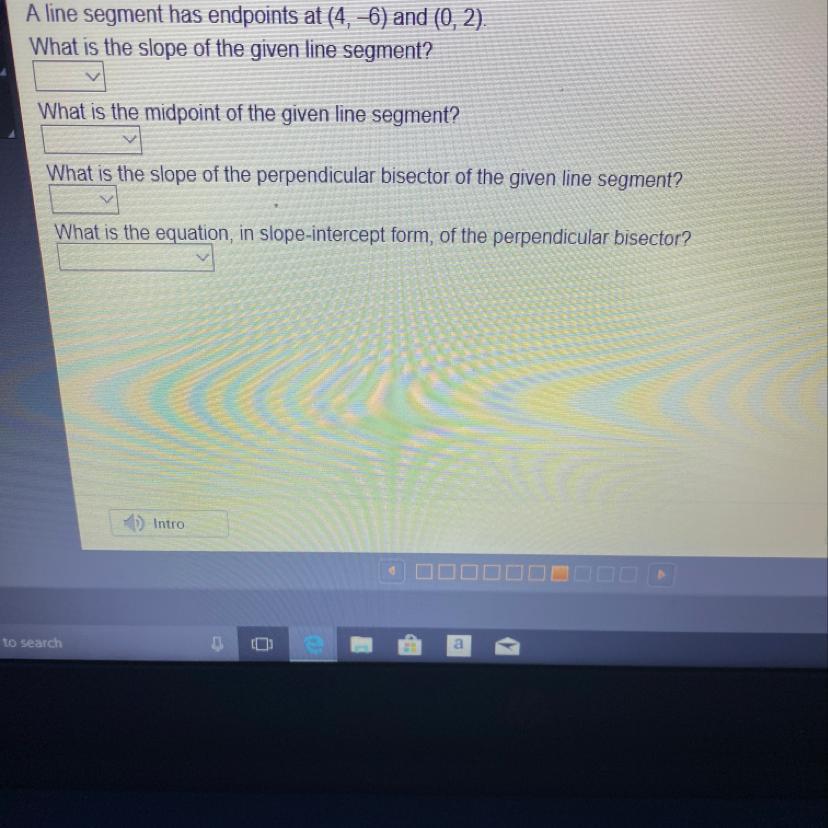 Part 3) What is the slope of the perpendicular bisector of the given line segment?