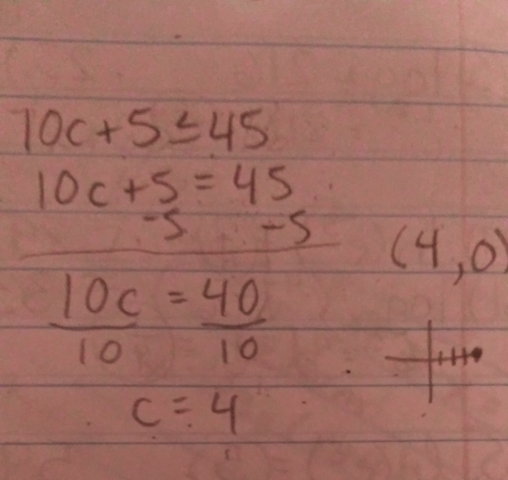 You would first solve for c then most of the time it is considered an x-value so (4,0) I'm not sure