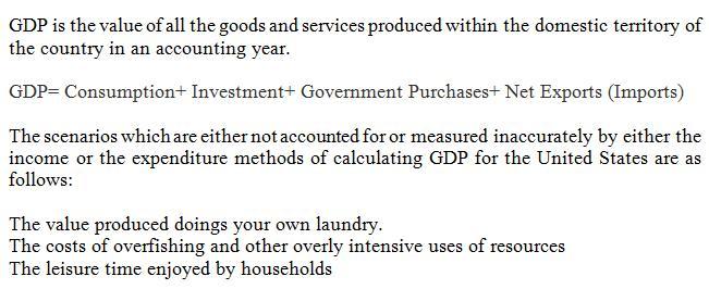 ons and production for that nation. Which of the following scenarios are either not accounted for or measured inaccurately by either the income or the expenditure methods of calculating GDP for the United States?