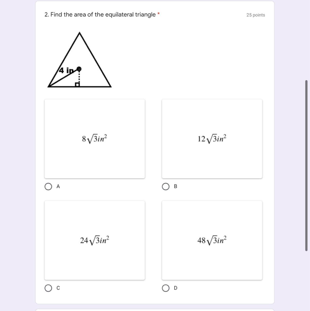 Indicates leg lengths of 1 and√3 and hypotenuse 2, the desired ratio is √3/2