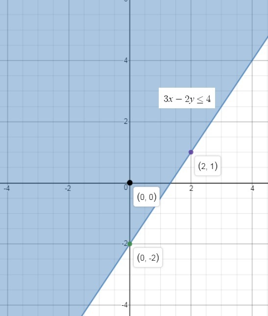 The y-intercept of the line is -2 and the shaded region is shading above the line. So, (0,0) must be lies in the shaded region.