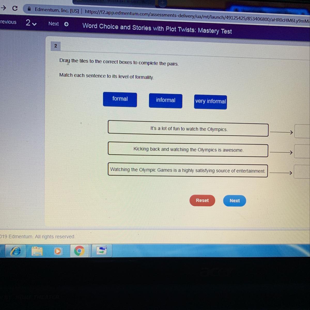 Match each sentence to its level of formally?