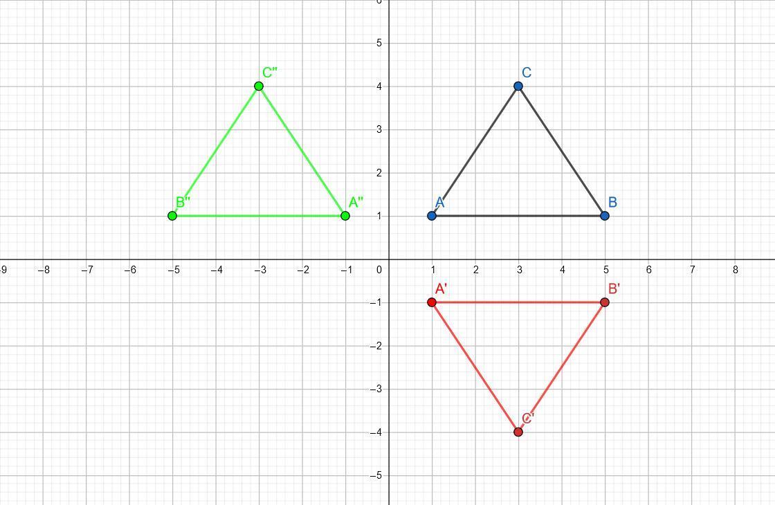 These points A'', B'', C'' differ from original vertices, so the image triangle is not the same as the pre-image triangle.