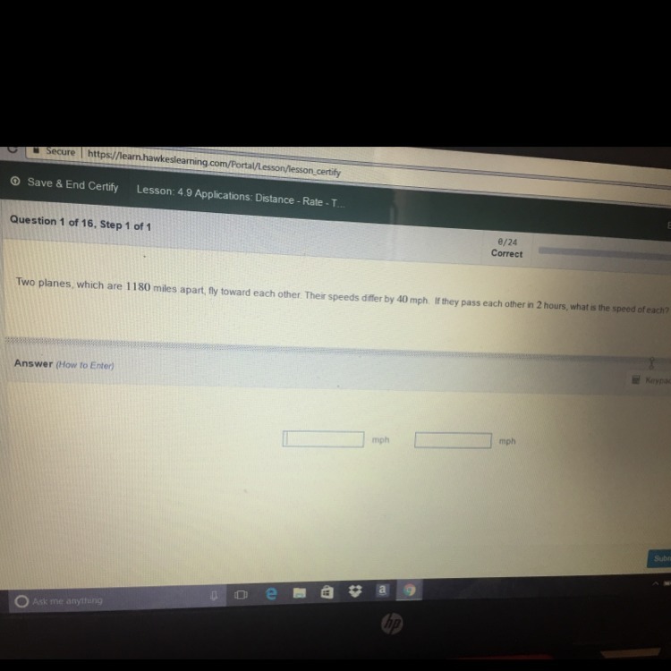 Recall your d = rt, or distance = rate * time