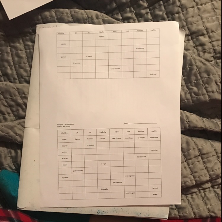 Trouver </span>Je trouve, tu trouve, il-elle-on trouve, nous trouvons,vous trouvez,ils-elle trouventArriver J'arrive, tu arrives, il-elle-on arrive, nous arrivons, vous arrivez, ils-elles arriventEcouter J'écoute, tu écoutes, il-elle-on écoute, nous écoutons, vous écoutez,ils-elles écoutentNager Je nage, tu nages, il-elle-on nage, nous nageons, vous nagez,ils-elles nagentTransporter Je transporte, tu transportes, il-elle-on transporte, nous transportons, vous transportez, ils-elles transportent