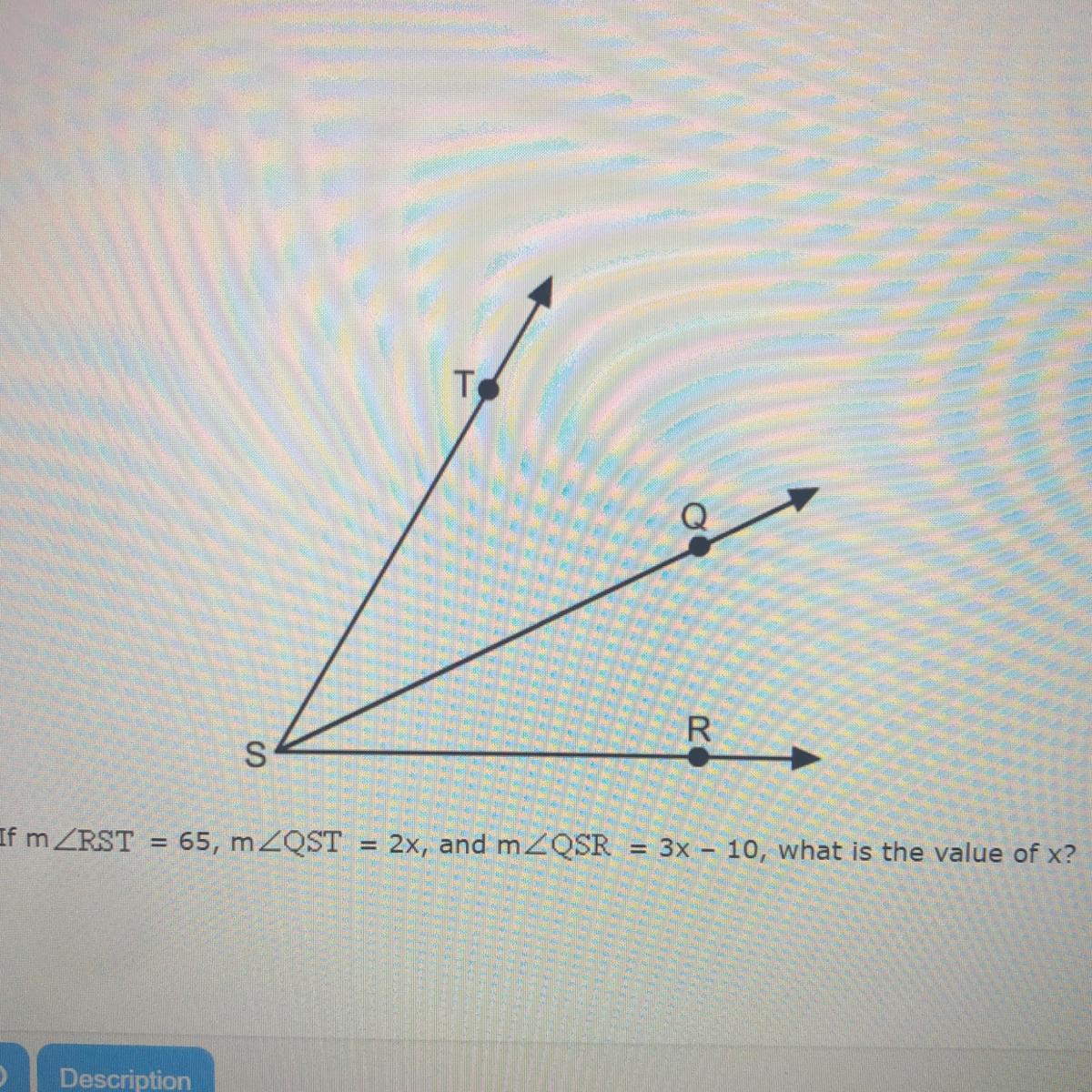 First, draw a quadrilateral figure QRST. Then, label angles RST, QST, and QSR.