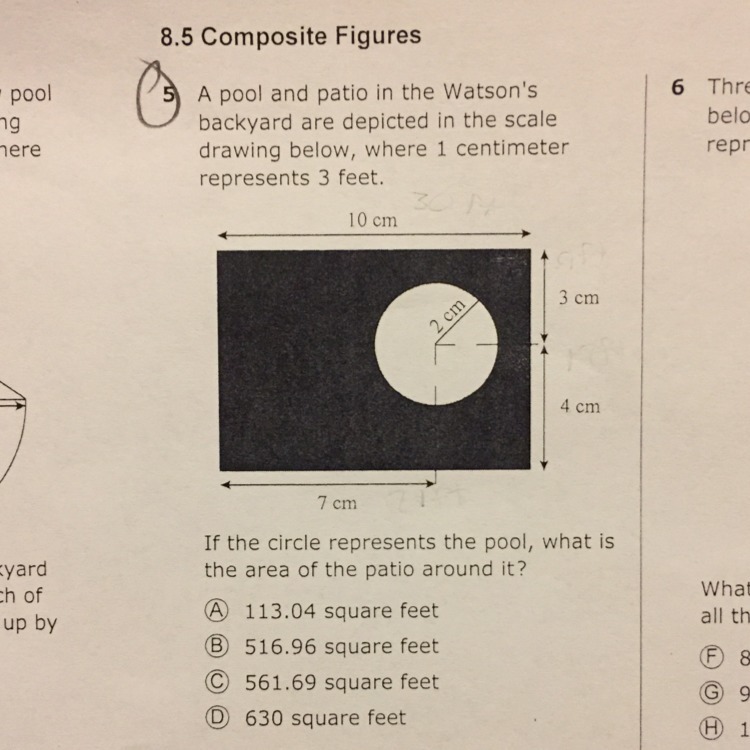 Patio area = backyard area - pool area