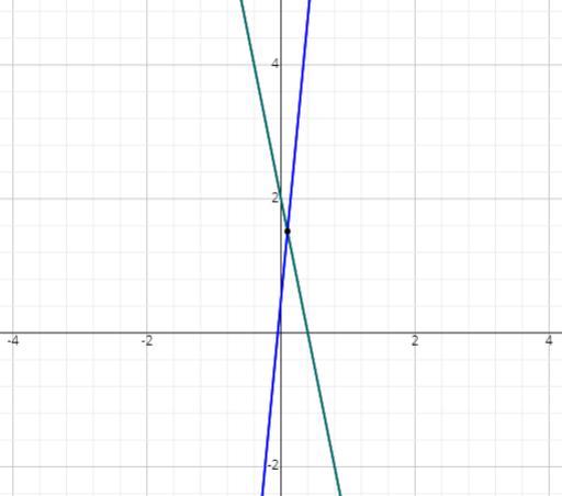 The two lines intersect at (3/31, 47/31) which is the solution to this system of equations.
