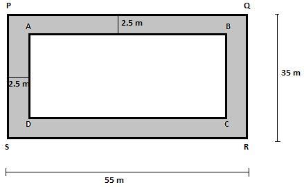 Here rectangle ABCD represents a park whose length is 55 m and breadth is 35 m. The shaded portion shows the path all around the park whose width is 2.5 m.