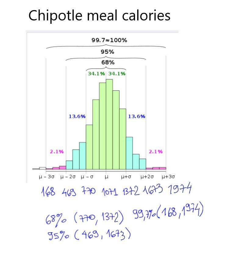 That rule indicates that <em>below</em> and <em>above</em> the population's mean, within a distance of one standard deviation, there are 68.27% of the cases that follows this distribution; within two standard deviations, below and above, there are 95.45% of the values, and within three standard deviations 99.73% of the cases. <em>Not all distributions have this characteristic</em>.