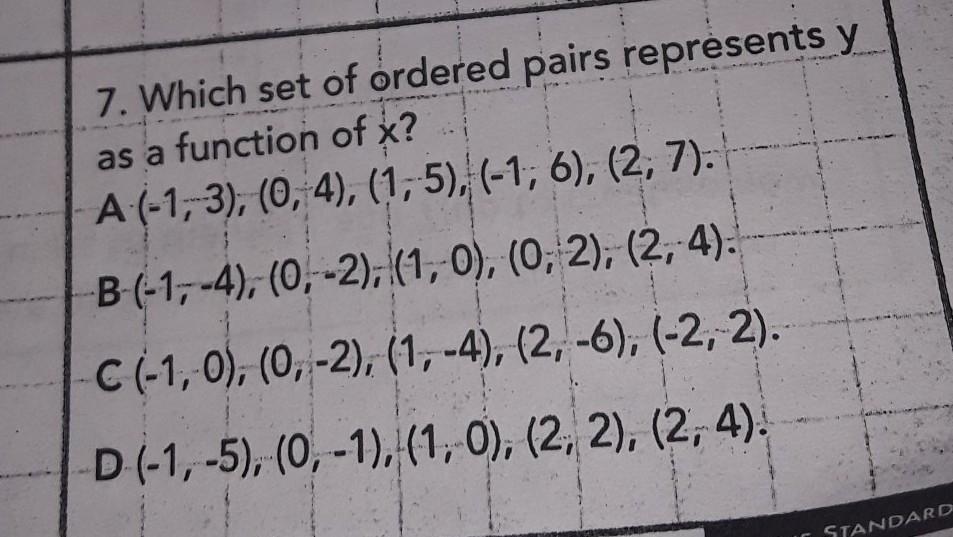 7. which set of ordered pairs represents y as a function of x? explain.​