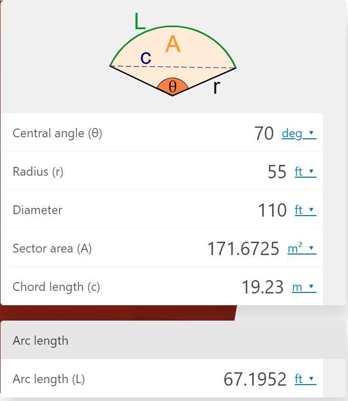 The arc length should be 67.1952 feet.