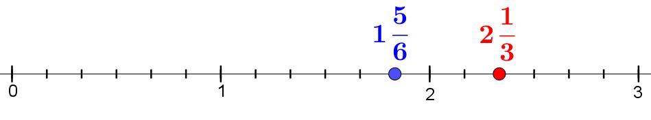 The mixed number 1 & 5/6 will be plotted a similar way.