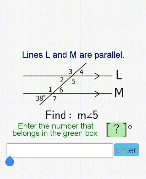 m<5 = m<4 - 65 degrees (alternate interior angle)