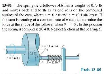 w = weight of the spring-held follower = 0.75 Ib