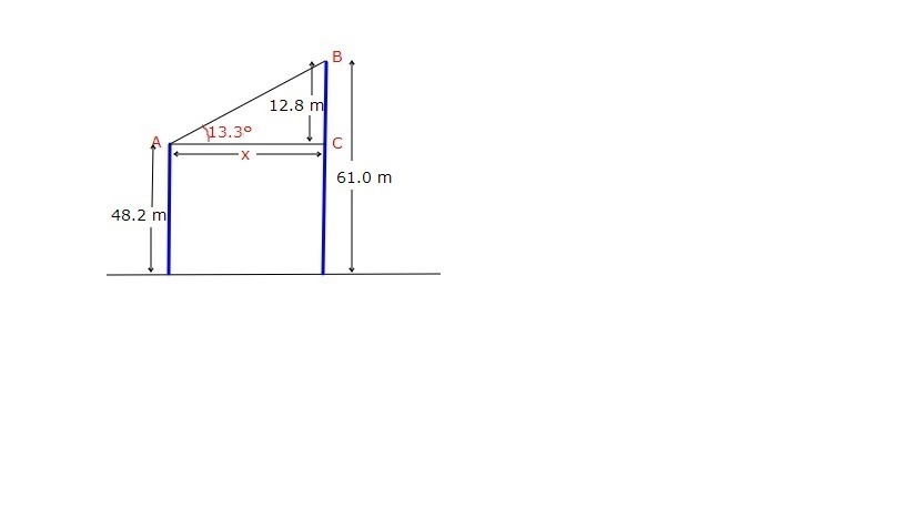 According to the below diagram, A and B are the positions of two balloons which are 48.2 meter and 61.0 meter above the ground respectively.