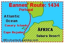 Eannes' journey in 1434 opened the African coast to navigators, and, soon, many Europeans were exploring the coast of Africa and beyond. Eannes worked in Prince Henry's household. On Eannes' first trip down the coast of Africa in 1433, he only sailed as far as the Canary Islands.