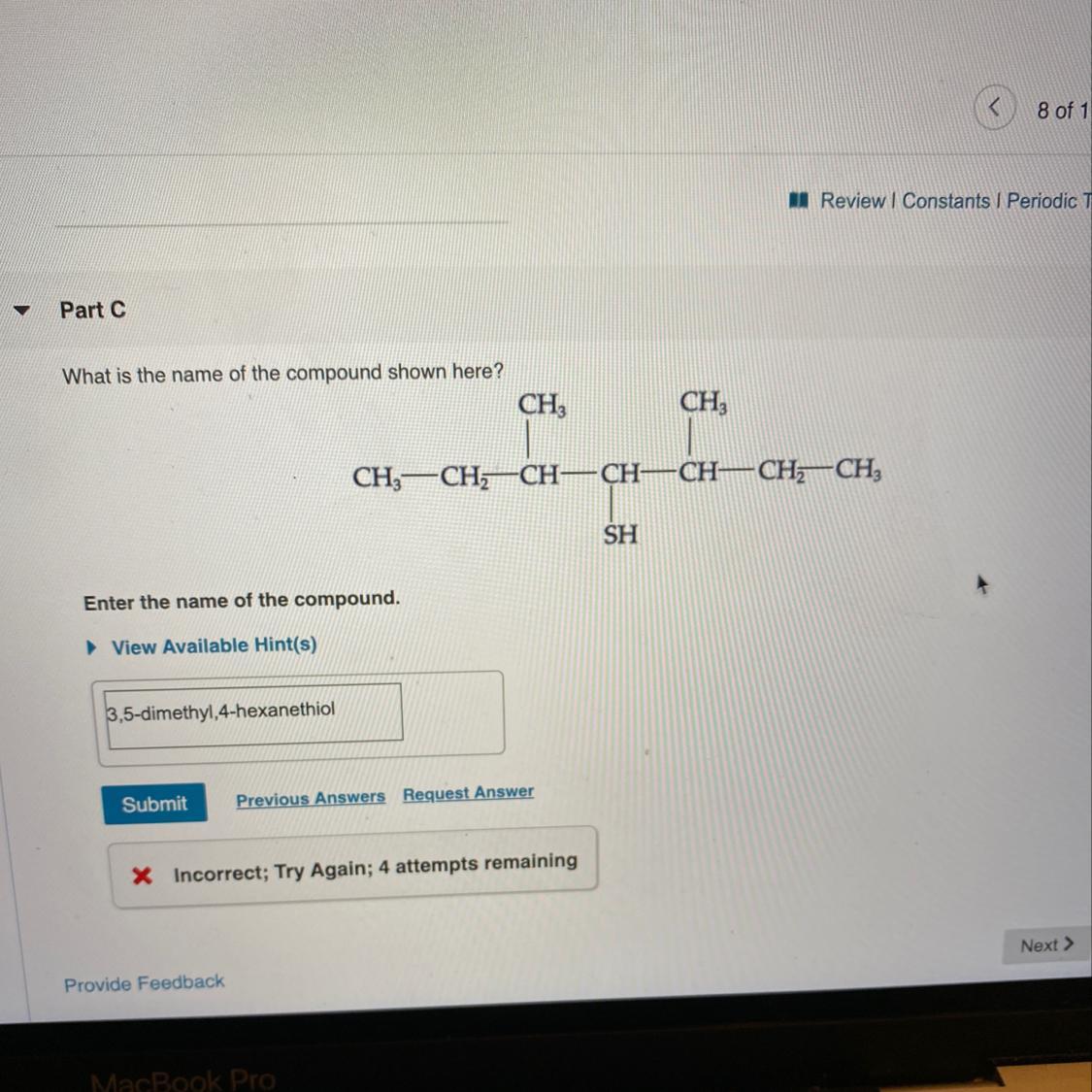 2. The functional group is –SH i.e thiol. We shall add thiol to end end of heptane making the parent to be heptanethiol. The functional group is at carbon 4.