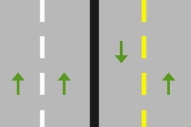 This doesn't really fall under the topic of mathematics, but still, I'm going to help you. A single broken <u>yellow</u><u /> line shows traffic flowing in opposite directions. This type of line is often seen on two lane rural roads. A single broken white line shows traffic flowing in two lanes in the same direction, as opposed to the yellow line.
