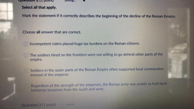 *The soldiers hired on the the frontiers were not willing to go defend other parts of the empire. (Correct!) <--------------------------------------------------------------------