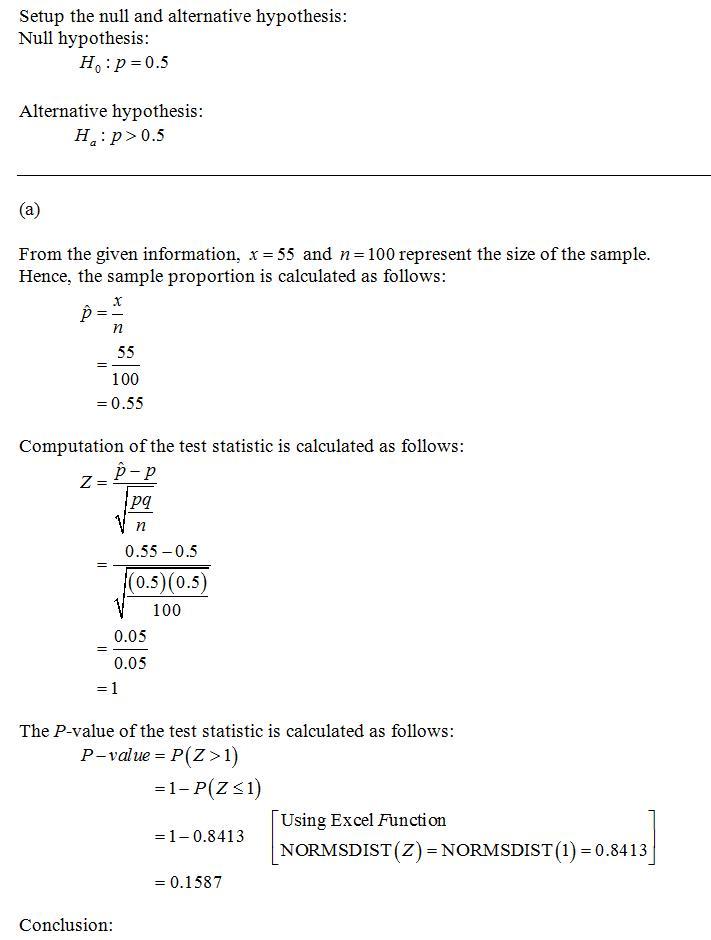 H0:p=0.5 vs Ha:p>0.5,
