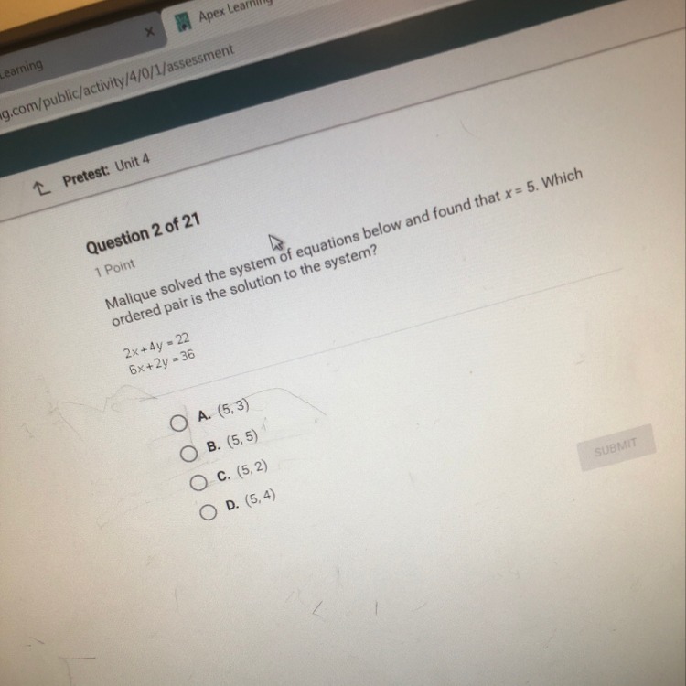 In order to factor it must be equal to 0, so we have 2y^2+y-10=0. We factor this and get y=5 (we also get y=-4 but it is an extraneous root). now we can plug that into either equation and find that x=2.