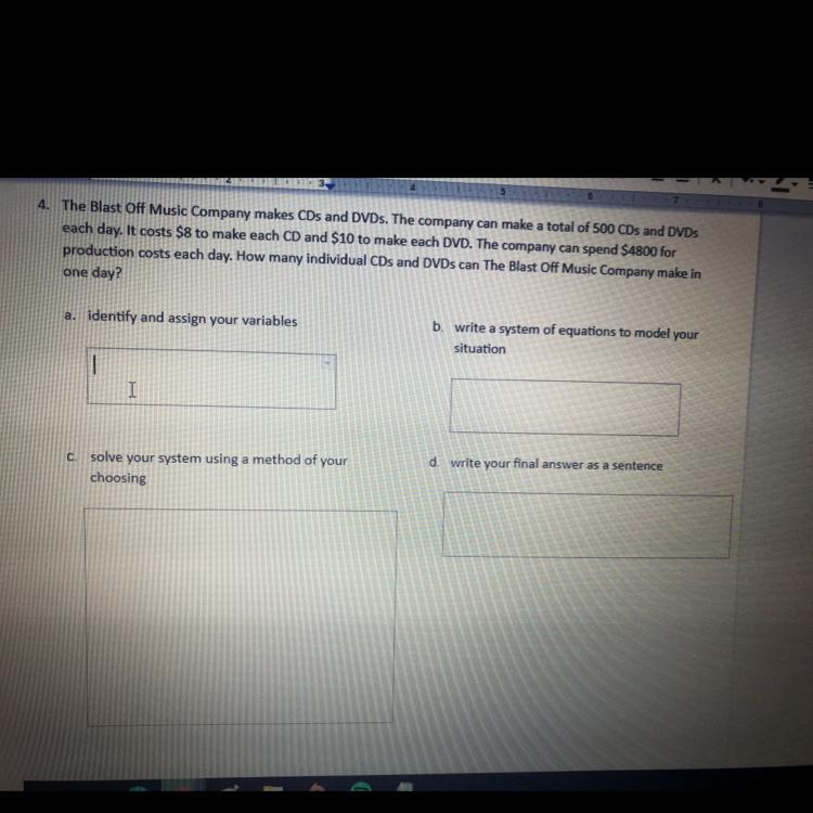 We have been that The Blast Off Music Company can make a total of 500 CDs and DVDs each day. We can represent this information in an equation as: