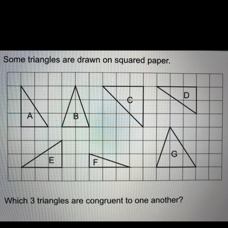 Triangles A, D, and E are the same size and shape, therefore congruent.