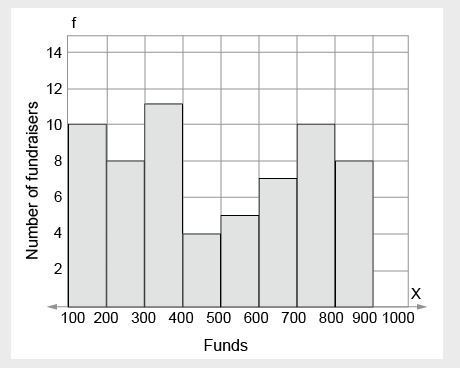Total frequency of fundraisers that raised between $600 and $800 = 7 + 10 = 17