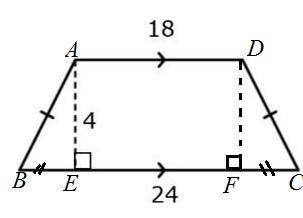 A figure of an isosceles trapezoid with bases 18 and 24, and the vertical height is 4.