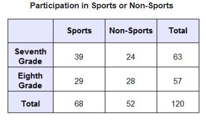 A group of 120 seventh- and eighth-grade students were asked whether they participate in sports or in non–sports-related activit