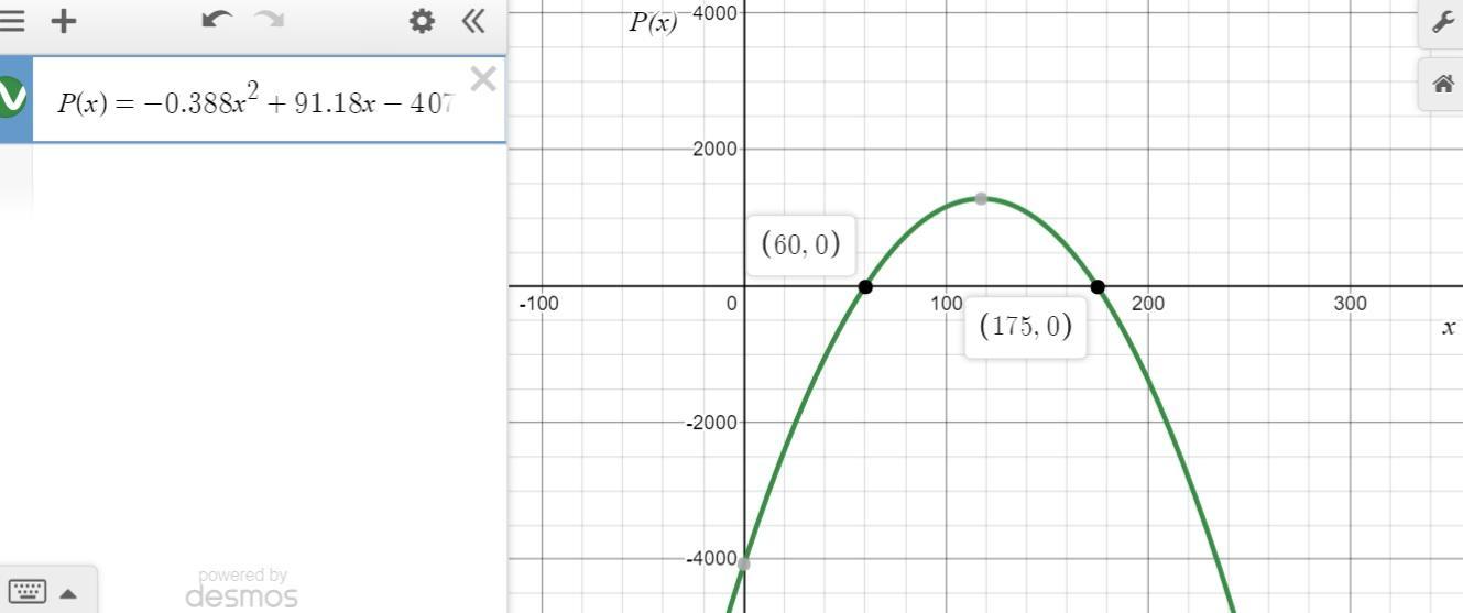 The x-intercepts represent the values of x when the value of P is equal to zero