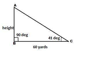 Given that photographer stands 60 yards from the base of a lighthouse and observes that the angle between the ground and the top of the lighthouse is 41 degree