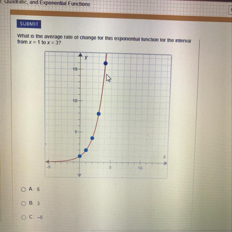 What is the average rate of change for this exponential function for the interval from x=1 to x=3