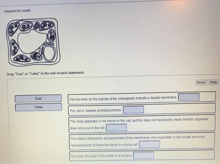 The relative dimensions and placement of the membranes and organelles in this model are exact representations of those structures in a living cell: False