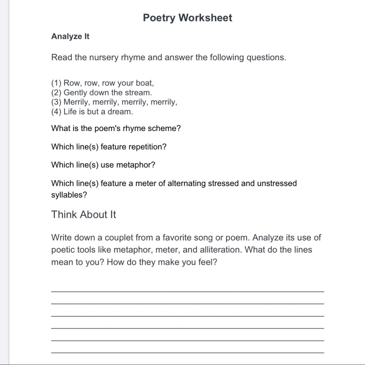 2.The 1st and the 3rd lines feature repetition, where they repeat the words "Row" and "Merrily" 3 or 4 times.