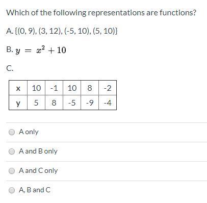 C: The function can also be represented using tables in which each x-value is not repeated and has only one y-value. But, in this given table, the values of x (x=10) are repeated twice.