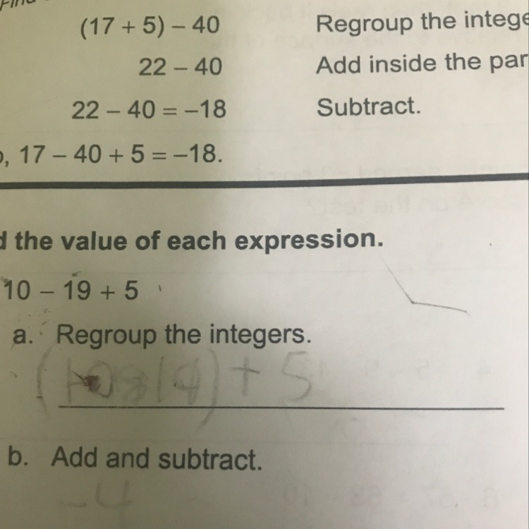 The exercise is apparently directed toward getting you to group the positive integers together and the negative integers together before you work out the difference. Doing that gives you ...
