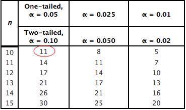 Critical value = 11
