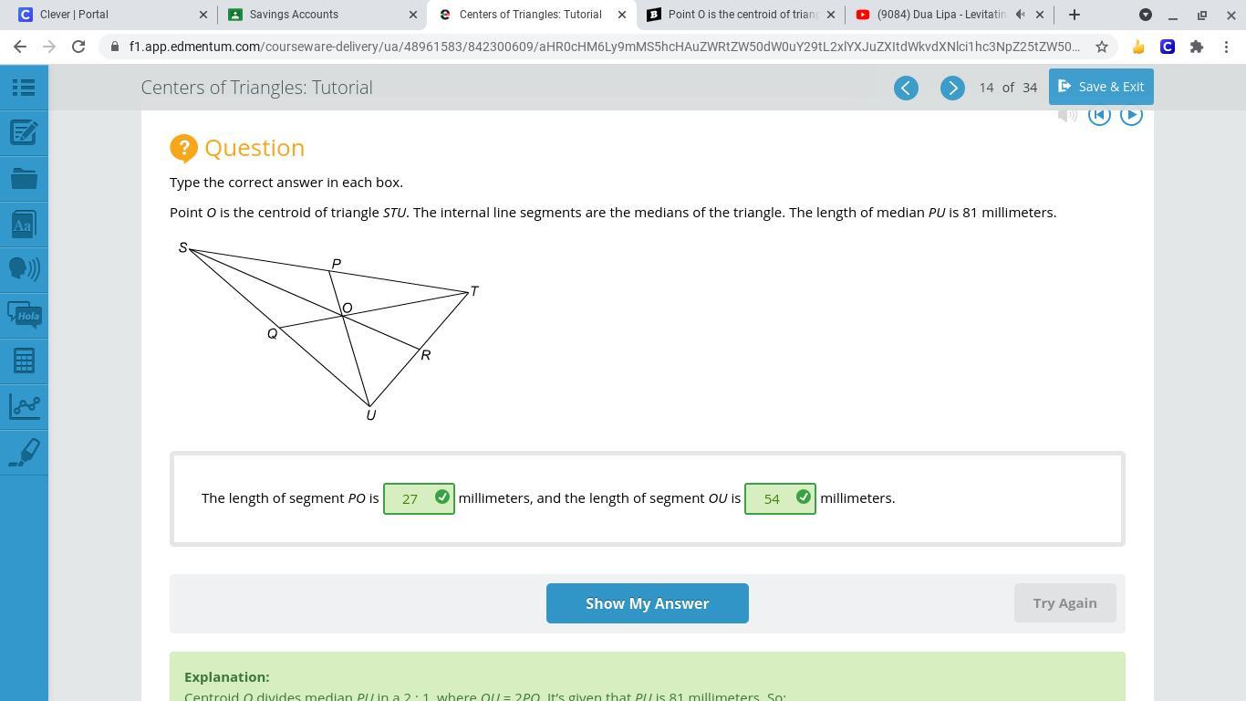 Answer: PO is 27 mm and OU is 54 mm