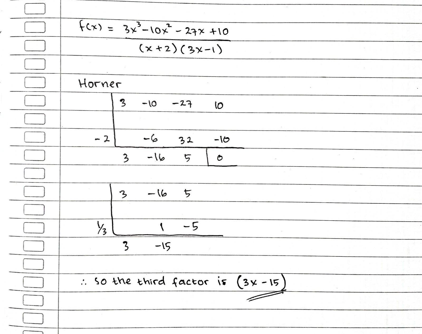 ∴ So, value of <u>p = -27</u>, <u>q = 10</u>, and the third factor is <u>(3x - 15)</u>