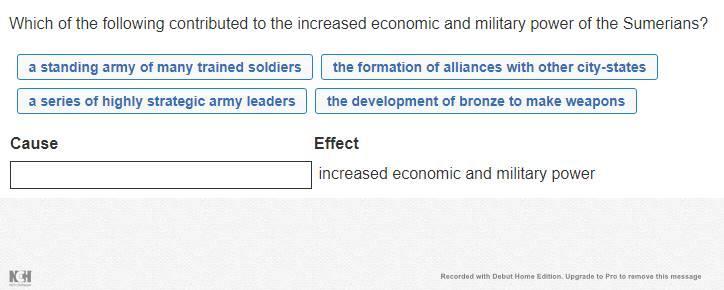One things that helped the Sumerians to become economically stronger and to have greater military power was the development of bronze. By developing bronze, the Sumerians were able to produce much better, stronger, and more efficient tools, which meant larger scale production of goods. Also, this meant creating better and more advanced weapons for the military, making them superior on the battlefield.