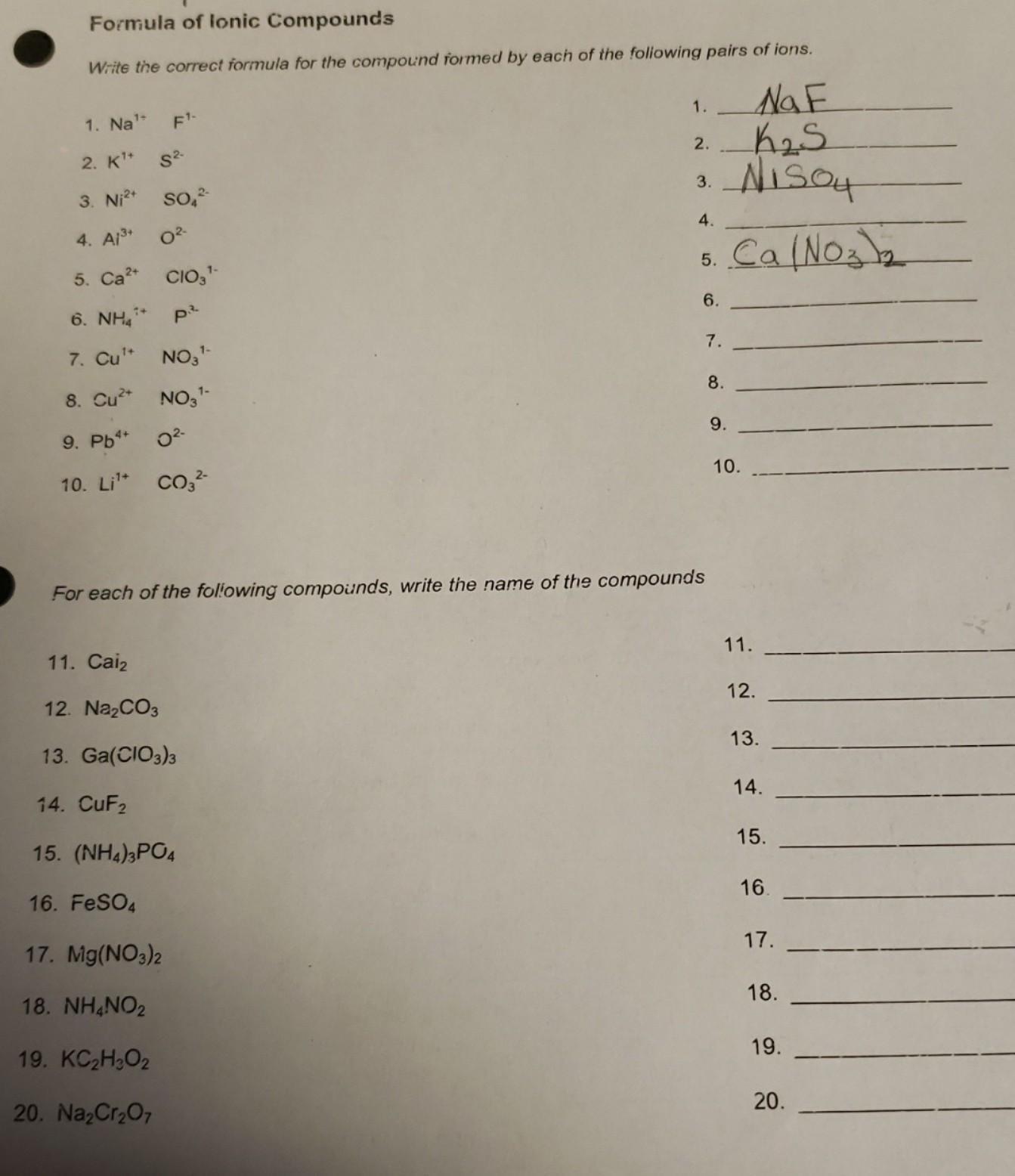Different ions are given in the question which forms different compounds which are given below.