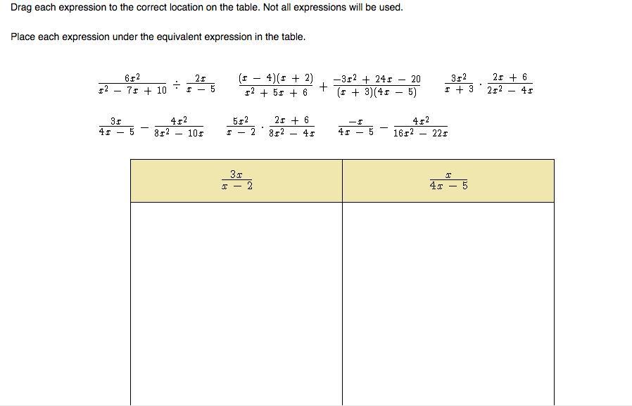 In order to match one of the columns, the term on the right must reduce to 2x/(4x-5), which it does not, or must have a denominator factor of x-2, which it also does not. no match.