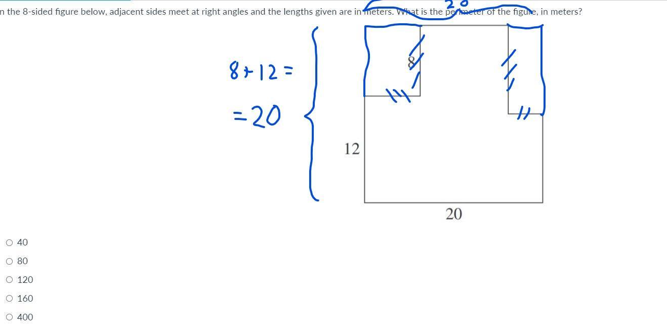 Look at the figure below. The perimeter is the same as if the corners were moved out to form a square. Then you have 4 congruent sides of length 20.