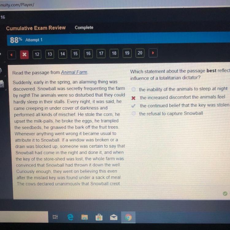 So, the continued belief that the key was stolen by Snowball shows that Snowball has control over the key and anything that happens to the key is likely to be attributed to him.