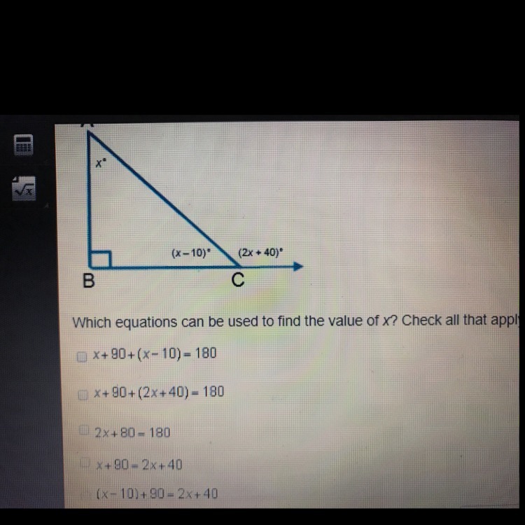 Equate both ratios to find x