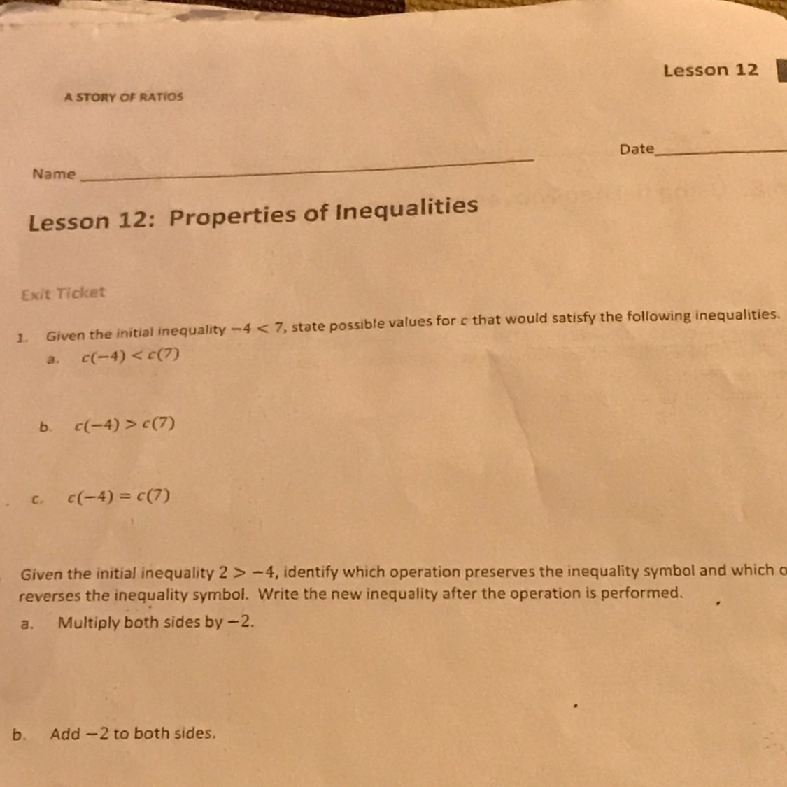 An inequality is an equation with more than one solution. In this problem, c should be a value that maintains the initial relationship.
