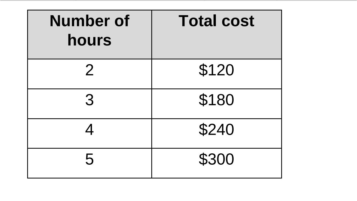What is the rate of change? What does this mean in a real-world context? (b) Write an equation in point-slope form to represent the total cost, y, given x hours. (c) Graph the equation written in Part (b). (d) What is the y-intercept? What does this mean in a real-world context? Answer:
